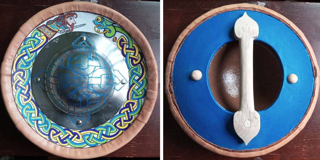 Aunque el broquel tiene poco espacio para decorarlo, podemos «atacar» un par de sitios como es el umbo o incluso la parte trasera, que aunque es la menos visible, tiene bastante sitio.
