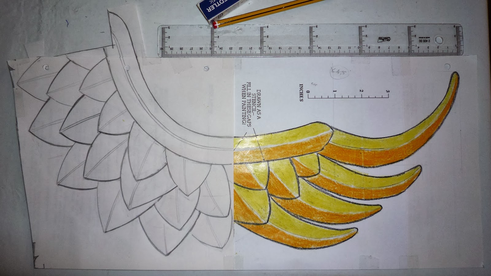 Lo primero de todo es elegir qué es lo que vamos a dibujar en nuestro scutum, es decir, el emblema que se va a lucir. Yo opté por el más clásico y vistoso, que son las eternas alas de águila. Buceé un poco por la red y encontré unas que me gustaron. Las imprimí, amplié y adapté al tamaño y forma del scutum. Incluso con unas pinturas de cera lo coloreé un poco para ver cuál era el efecto.