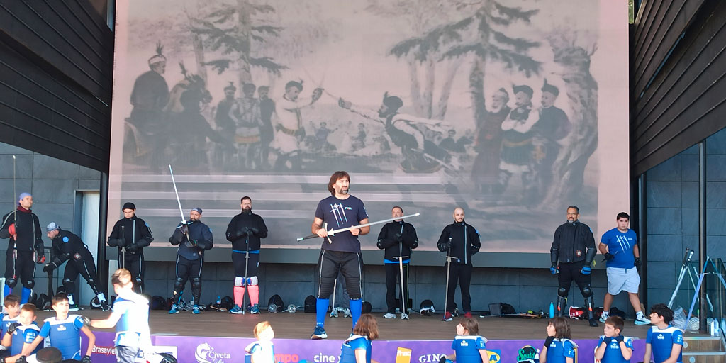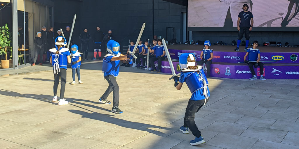 Cada septiembre repetimos esta exhibición de HEMA —la coordinamos con el Día Internacional de la Esgrima— para mostrar lo que hacemos en el club: esgrima infantil, juvenil y para adultos; y varias disciplinas: espada larga, espada y broquel, ropera y sable militar. Es un escaparate vivo, un “descubre” de la esgrima histórica.