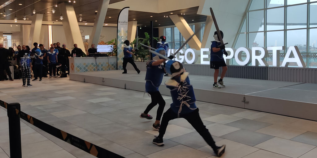 Se exhibieron las 4 disciplinas que trabajamos en la Sala Viguesa de Esgrima Antiga: Espada de armar y broquel, Espada larga, Espada Ropera y Sable Militar.