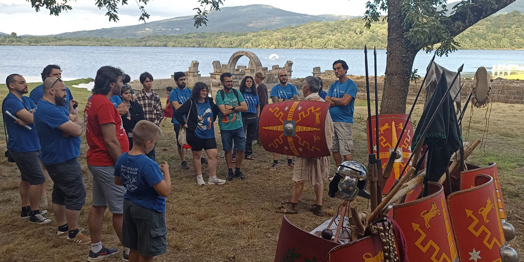 ¡¡¡Pero allí no sólo había piedras, si no también… romanos!!! Acampados al borde del embalse se encontraban los grupos de Recreadores de Galicia, Legio IV Macedonica y Antiqvi Mores, que nos deleitaron con la instrucción militar en el propio idioma de ellos, ¡sí, eso mismo, en latín!, utensilios de uso cotidiano como de escritura, confección de cinturones, etc, y la distinta panoplia de un legionario según la época, como gladius, scutum, lorigas, gálea, etc.